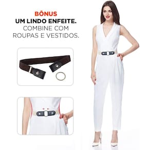-Cinto elástico sem fivela, deixa a parte frontal da roupa livre, evitando assim, uma pressão extra na barriga, sendo mais confortável com um visual mais moderno.