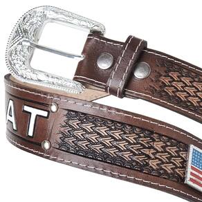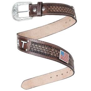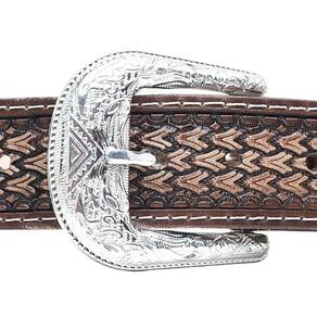 Cinto Western Ariat Couro Cowboy Fivela de Metal Texturizado Otima Qualidade Festa do Peao Barretos - Marrom - 105