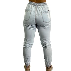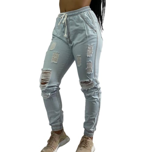 Cintura Alta Calça Destroy Jogger Jeans Feminina C/ Elástico C35 - Azul Claro - GG