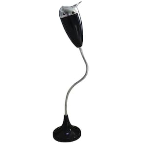 Material: ferro + plástico + areia mineral Peso: 1180 g Tamanho: 73 cm Design flexível de pescoço de ganso — equipado com um eixo de mangueira de metal dobrável que permite um posicionamento de 360°, adaptando-se a qualquer ângulo ou altura do usuário para uso confortável. Altura ajustável e estável — varia de 55 cm a 88 cm, feita com uma base pesada preenchida com areia mineral para garantir o equilíbrio e evitar tombamentos. Tampa à prova de vento para uso limpo — Possui uma tampa segura para evitar a dispersão de cinzas e minimizar o odor persistente de fumaça, ideal para banheiros internos ou pátios externos. Construção durável em metal e plástico — Feita de uma combinação de ferro resistente, plástico e areia mineral, construída para suportar o uso frequente em ambientes domésticos e comerciais. Elegante e fácil de manter — O acabamento elegante em preto e cromado combina com a decoração moderna; os componentes internos removíveis tornam a limpeza rápida e descomplicada.