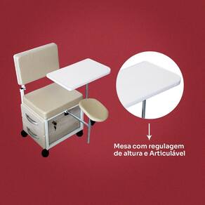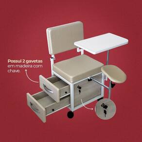 - conforto superior: estofado macio e suporte ergonômico para longas sessões. Espuma densidade d 28. - estrutura robusta que garante uma vida útil prolongada, com suporte de até 120 kg distribuídos uniformemente - praticidade: mesa articulável com regulagem de altura. Apoio de pés com regulagem de altura e inclinação, e removível. - possui duas gavetas com chave e rodinhas que facilitam na movimentação. - estilo moderno: transforme seu ambiente de trabalho em um espaço moderno e eficiente com a cirandinha evolux - se você busca excelência no atendimento e conforto em seu trabalho, a cirandinha evolux é a escolha ideal Ideal para: - manicures e pedicures - salões de beleza - clínicas de estética