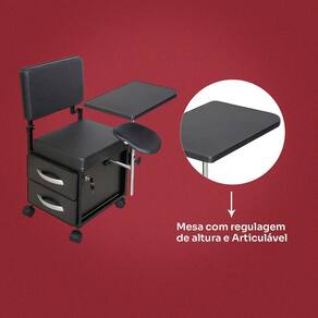 - conforto superior: estofado macio e suporte ergonômico para longas sessões. Espuma densidade d 28. - estrutura robusta que garante uma vida útil prolongada, com suporte de até 120 kg distribuídos uniformemente - praticidade: mesa articulável com regulagem de altura. Apoio de pés com regulagem de altura e inclinação, e removível. - possui duas gavetas com chave e rodinhas que facilitam na movimentação. - estilo moderno: transforme seu ambiente de trabalho em um espaço moderno e eficiente com a cirandinha evolux - se você busca excelência no atendimento e conforto em seu trabalho, a cirandinha evolux é a escolha ideal Ideal para: - manicures e pedicures - salões de beleza - clínicas de estética