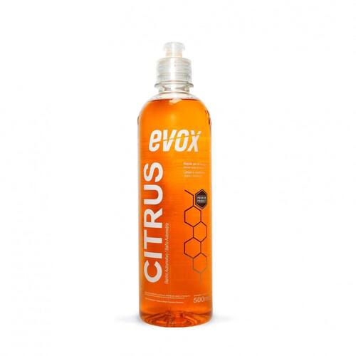 Citrus banho automotivo 500ml evox Citrus banho automotivo 500ml evox Citrus é um produto de alto rendimento com ph neutro que limpa, mantém e renova o brilho da pintura sem remover ceras ou selantes da superfície. Seu alto rendimento permite diluição de até 1:400 e lavagem de até 50 veículos pequenos.Obs: a pré-lavagem pode ser realizada com aplicação de um banho de espuma, com auxílio de canhão de espuma. Diluição recomendada: 100ml de produto para 1l de água. Modo de uso:Realizar a pré-lavagem do veículo para remoção de excesso de sujeira.Em seguida, diluir o produto na proporção recomendada e começar a lavagem com auxílio de luva de microfibra (mergulhando a luva na solução), sempre iniciando pelas partes superiores do automóvel. Enxaguar até a completa remoção do produto e finalizar com toalha de secagem. Diluição:Lavagem de manutenção: 10ml de produto / 4l de águaUso em snow foam: 100ml de produto / 1l de água Informações adicionais:Rendimento médio: até 50 veículos de pequeno porte (lavagem de manutenção);Indicado para uso em superfícies com ou sem vitrificação;Em caso de repintura, pode ser utilizada após 15 dias.