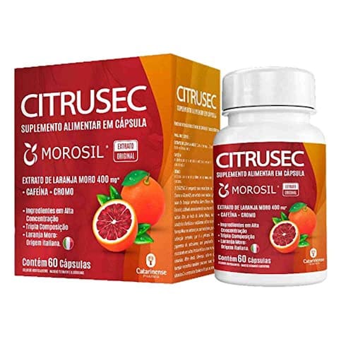 Informações Técnicas Número de Registro Produto dispensado da obrigatoriedade de registro conforme RDC n° 27/2010. Ingredientes Extrato de Laranja Moro (Citrus sinensis L. Osbeck); Cafeína; Picolinato de Cromo; Gelificante: Gelatina (INS 428); Agente de massa: Celulose Microcristalina (INS 460i); Antiumectantes: Dióxido de silício (INS 551) e Estearato de Magnésio (INS 470iii); Corantes: Dióxido de Titânio (INS 171), Vermelho 40 (INS 129), Amarelo de Quinolina (INS 104) e Azorrubina (INS 122); e Estabilizante: Croscarmelose sódica (INS 468); Quantidade 60 cápsulas Recomendações de Uso Recomenda-se ingerir 2 cápsulas ao dia. Por conter cafeína, recomenda-se cautela no uso do produto após as 18h.