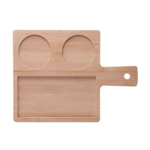 Itens inclusos: 1 Bandeja de Bambu 32,5x22x1cm 2 Petisqueiras de Vidro 8x8x5cm 2 Colheres de Bambu 12x2,5x0,5cm 1 Tábua Ladrilho 20x10x0,5cm