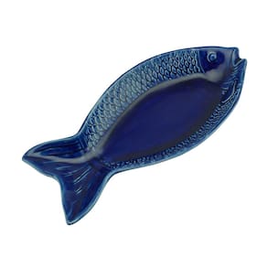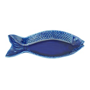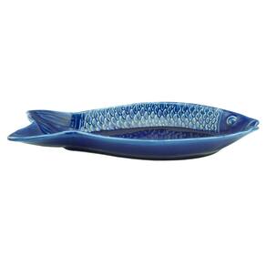 Cj 2 Travessas de Cerâmica C/Formato Peixe Ocean Azul 28x13cm Bon Gourmet