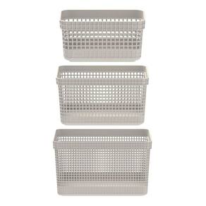 Cj 3 Caixas Organizadoras Cestos Grid Closet Quarto Bebê Cor: Bege F6061 MAPLE DECOR DESCRIÇÃO Os cestos organizadores são funcionais e multiuso produzidos em plástico para organização e otimização de ambientes como cozinhas, lavanderias, closets, banheiros, escritórios, refeitórios, despensas, lojas. Possui paredes vazadas e pegas para facilitar o manuseio, e tampas tornando-os empilháveis e modulares. Ideal para organizar todos os ambientes, por ser um cesto grande é muito útil para organizar brinquedos, mantas, almofadas e etc, além de úteis na organização, são peças que podem ser usadas como decoração. Com estes cestos você pode deixar a sua criatividade fluir. cesto organizador de bancada cesto organizador quarto de bebê caixa sem tampa para escritóro pode ser utilizada como floreira disponível em Material: Matéria prima é proveniente de resíduos coletados do litoral do brasil com o propósito de evitar que este plástico chegue até o mar ou rios. Produto 100% produzido com plástico pós-consumo. Cores: Preto, Cinza, Branco, Bege e Azul Glacial. 01 un - Cesto 20 Litros: Altura: 22.2cm x Largura: 28cm x Profundidade: 38cm 01 un - Cesto 8 Litros: Altura: 15.2cm x Largura: 28cm x Profundidade: 22cm 01 un - Cesto 2,5 Litros: Altura: 10.2cm x Largura: 20cm x Profundidade: 14cm Marca: Não Informado