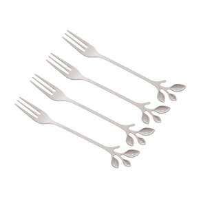 conjunto de garfos para aperitivos leaves com 4 peças. Feitos em aço inoxidável, as peças tem acabamento em alto brilho com polimento. Possui design único e sofisticado, com qualidade perfeita e exclusiva.