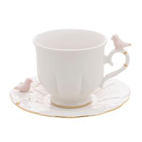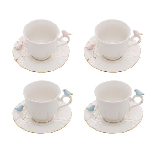 Conjunto 4 Xícaras P/Chá C/Pires Birds Design Plate Colorido 200ml em porcelana são ideais para a hora do chá. Com pires e xícara enfeitados com passarinho na borda, porcelana branca trabalhada e laterais douradas, ideais para servir o chá à qualquer hora do dia.