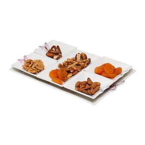 Itens inclusos: 4 Petisqueiras de Porcelana Branca Quadrada Borboletas 9,5x9,5cm Wolff 1 Petisqueira de Porcelana Branca Retangular Borboletas 19x9cm Wolff 1 Bandeja de Porcelana Branca Retangular Borboletas 30x20,5cm Wolff