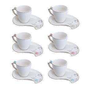 Conjunto 6 Xícaras Para Café Com Pires Curvado Cute Flower Design Plate Colorido 90ml em porcelana são ideais para a melhor hora do dia, que é a do cafezinho. Com pires e xícara enfeitados com flor na borda, porcelana branca trabalhada e laterais douradas, ideais para servir o cafezinho à qualquer hora do dia.