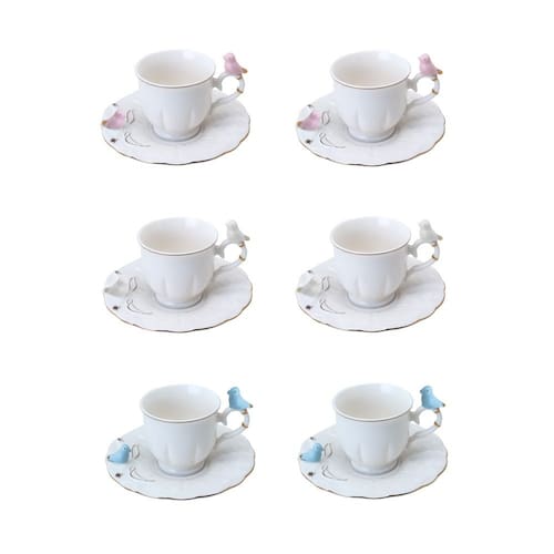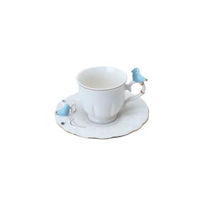 Conjunto 6 Xícaras P/Café C/Pires Birds Design Plate Colorido 100ml em porcelana são ideais para a hora do café. Com pires e xícara enfeitados com pássaro na borda, porcelana branca trabalhada e laterais douradas, ideais para servir o café à qualquer hora do dia.
