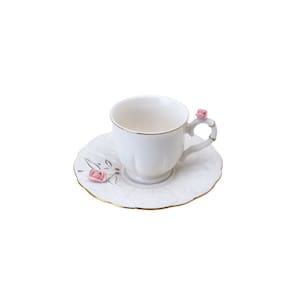 2 Xícaras P/Café C/Pires Flower Design Plate C/Flor Rosa