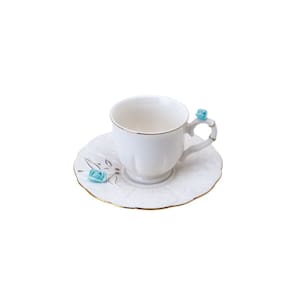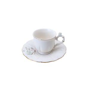2 Xícaras P/Café C/Pires Flower Design Plate C/Flor Branca