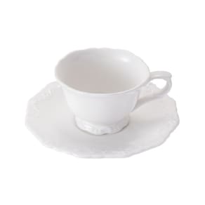 Cj 6 Xícaras P/Chá C/Pires Durable Porcelain em Alto Relevo Branco 200ml Wolff