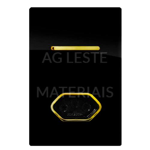 1. CJ INTERRUPTOR SIMPLES + TOMADA 10A COM SUPORTE 4X2 - DICOMPEL NOVARA PRETO BRILHANTE GOLD - DNV1700/19PBGD