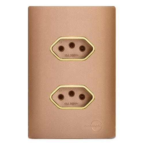 1. CJ TOMADA DUPLA 20A COM SUPORTE 4X2 - DICOMPEL NOVARA OURO ROSE GOLD - DNV1500/33ORGD