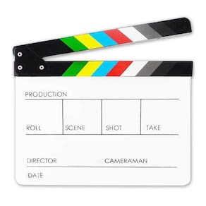 Também conhecida como Clapper Board, a claquete é uma das ferramentas mais simples e úteis durante gravações por possibilitar de forma fácil fazer marcações de takes e cenas no próprio vídeo, facilitando muito na hora da edição. Além disso, ela auxilia na sincronização precisa do áudio com o vídeo. Uma ferramenta essencial para filmes ou gravações mais complexas.