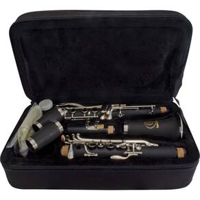 Clarinete Harmonics Hcl-520 Bb 17 Chaves O Clarinete Harmonics HCL-520 BB é afinado em Bb (Si bemol) e é ideal para quem está iniciando os estudos em instrumentos de sopro. Tem o corpo feito em Bakelite e as molas são inoxidáveis, tornando-o muito mais fácil de manusear. O apoio de polegar é emborrachado, oferecendo muito conforto para quem toca. Perfeita entonação e resposta precisa, ajudam a quem está começando os estudos a ter um som preciso, tornando o aprendizado um processo gratificante e progressivo.