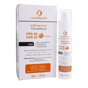 Vulcan Ice Clarydefense Fps50 Uva20 possui ação multifuincional especialmente desenvolvido para proteger e iluminar peles que apresentam alterações pigmentares como: melasmas, efélides, melanose solar e hipercromias pós inflamatórias e também para peles com surgimento de hipercromias faciais. Sua fórmula leve atua através da dermoproteção solar, protege a pele das toxinas do ambiente e do clima.