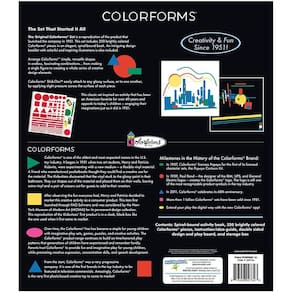 O kit premiado que começou tudo. O Conjunto de Colorforms Retrô é exatamente como o conjunto que lançou nossa marca em 1951. No conjunto estão 350 stick-ons geométricos coloridos em 5 cores diferentes com uma placa de jogo reversível de 2 lados. Tudo vem em um elegante livro em espiral, com um caso de apresentação que apresenta a história de Colorforms. As crianças podem fazer centenas de figuras, padrões e formas diferentes com as incríveis Formas coloridas que aderem a qualquer superfície como mágica. Descasque as formas coloridas e use-as repetidamente. Vencedor do Prêmio Escolha dos Pais por Brinquedo Clássico Top. Este é um grande presente para crianças pequenas, e será para horas de brincadeira criativa. Por mais de 58 anos, a Colorforms inspirou as crianças a seguirem suas próprias imaginações. Não há curva de aprendizado, não há instruções complicadas- as crianças apenas pegam colorforms e começam a jogar. Com colorforms, criar um novo mundo é fácil. Mude de ideia, mude de cena, seja criativo. É uma diversão boa e saudável. Você se divertiu com colorforms quando era criança, e agora seus próprios filhos também. Colorforms tem as licenças e formatos pré-escolares mais quentes que agradam a uma nova geração de crianças.