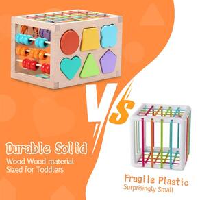 -?PORTÁTIL E CONVENIENTE?O brinquedo separador de formas de madeira é compacto e leve, facilitando o transporte. Crianças menores de 2 anos precisam estar acompanhadas pelos pais. Possui um compartimento de armazenamento embutido para todos os blocos de construção, promovendo bons hábitos de armazenamento e mantendo a área de recreação arrumada.