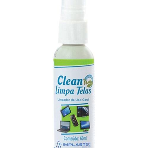 Clean limpa telas 60ml com flanela Especialmente desenvolvido para a remoção de manchas, marcas de dedos (gordura) e poeira de monitores de lcd e plasma, eliminando a estática do monitor, o que reduz o acúmulo de pó na tela; É a base de éteres glicólicos e água, possibilitando a limpeza sem agressão ao monitor. Principais aplicações: Deve ser utilizado para limpeza de notebook, tv de plasma e lcd, mp3, cd, monitores de pc, entre outras aplicações. Dados técnicos: Aspecto: líquido transparente; Odor: característico; Densidade a 25 °c: 0,930 a 0,933 g/cm³.
