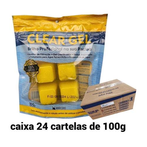 Função do produto: Elimina a turbidez da água de piscinas aglomerando rapidamente partículas que estão em suspensão, formando flocos que se decantam por serem mais pesados. Esse processo substitui o uso do Sulfato de Alumínio e Barrilha. Aumenta a eficácia da filtração, pois facilita a retenção das impurezas pela areia do filtro. Com Clear Gel você obtém uma piscina com água límpida e cristalina.