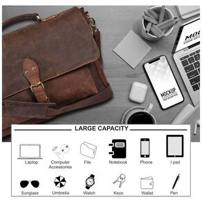 Projetado para conveniência e espaço extra. A bolsa tem três bolsos. Dois bolsos pequenos na frente e atrás, um bolso grande principal. Os pequenos bolsos podem acomodar facilmente um iPad e outros itens essenciais. O bolso principal tem uma bolsa de suporte para celular e um suporte para notas , carteira. Ele tem um suporte acolchoado para laptop para mantê lo estável e segurar um laptop de 15,6 polegadas, com facilidade. Correia ajustável , removível feita de couro e lona para a bolsa premium. Você pode remover a alça por completo e tem um acolchoamento de ombro para maior conforto. Possui dois bolsos com fechaduras magnéticas de alta qualidade e uma fechadura com zíper no bolso principal. 100 Couro Para proporcionar a melhor experiência, usamos Superior 100 Couro Couro magistralmente costurado com tecido durável e de poliéster garantindo longa durabilidade. Você pode testar nossos produtos para couro 100 em qualquer laboratório. A bolsa inteira com o exterior da alça também é feita de couro. Esta pasta de laptop , bolsa de mensageiro serve como uma bolsa multiuso. É uma bolsa para escola, trabalho, escritório, faculdade, compras, camping, viagens, saídas noturnas divertidas e todas as outras necessidades diárias. Cosido com maestria com linha e couro da mais alta qualidade realça a riqueza e o toque da bolsa. Esta bolsa para laptop é um item de presente maravilhoso para homens e mulheres. 100 Couro Feito na Índia Forro de poliester Fecho magnético 28 , ombro caído Marca: Não Informado