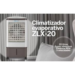 Climatizador de Ar Evaporativo Portátil Umidificador Zellox 80W 20 Litros 4 Funções 110V Cor: Cinza Voltagem: 127V Descrição: Climatizador de Ar Portátil Umidificador 20 Litros 4 Funções 80W Zellox O Climatizador de Ar ZLX-20 da Zellox tem um design moderno e elegante. Possui reservatório de água com capacidade para 20 litros, é ideal para quem tem pouco espaço , mas não abre mão do conforto. Possui 4 funções em apenas 1 produto, climatiza, umidifica, ventila e filtra.