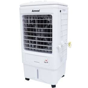 Climatizador Amvox ACL 018. Possui tanque de água de 18 litros, 3 velocidades, swing automático e controle mecânico. Fluxo de ar máximo de 3.000 m³/h. Intenso fluxo de ar e vasta área climatizada consumindo apenas de 1 a 2 L/h de água. Produto amigável ao meio ambiente.