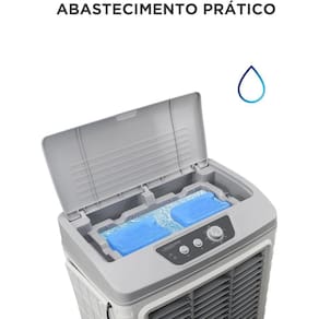 Com grande capacidade de água e duplo reservatório, o aparelho garante longa autonomia de funcionamento. Além disso, possui sistema de oscilação das aletas que distribui o ar de forma uniforme pelo ambiente, alcançando diferentes áreas do espaço.