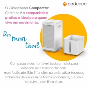 Transforme o clima da sua casa ou escritório com o Cadence Compactar! O aparelho ideal para quem busca frescor e um ambiente mais agradável, sem a necessidade de ar-condicionado. Com um design moderno e portátil, é fácil de transportar para qualquer ambiente.