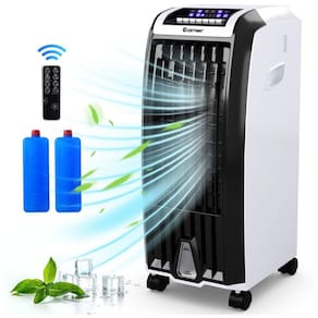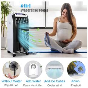 Resfriar, umidificar e purificar Nosso resfriador de ar é equipado com almofada de resfriamento em favo de mel e filtro lavável, este resfriador portátil pode efetivamente transformar ar quente seco em ar úmido frio, refrescando o ar ao mesmo tempo. Fácil de operar, você pode simplesmente encher água fria com cubos de gelo para resfriar o ar. Este produto não está à venda na Califórnia Design amigável O tanque de água de grande capacidade de 6,5 L evita que você adicione água continuamente. Giro automático da lâmina para obter suprimento de ar de grande angular nas direções horizontal e vertical. Painel de controle e controle remoto aprimorados tornarão o uso mais fácil e conveniente. 3 Velocidade do Ventilador Ventilador do refrigerador de 3 velocidades com controle de toque fácil, o refrigerador evaporativo projetado para o resfriamento do espaço pessoal. Você pode selecionar a energia eólica perfeita conforme necessário. Você pode desfrutar de baixa velocidade quando está dormindo e média velocidade para relaxar, bem como alta velocidade no verão escaldante. Função de temporização A função de temporização de 6,5 horas faz com que o refrigerador de ar pare automaticamente depois de definir o tempo de execução. Além disso, este refrigerador evaporativo ultrassilencioso faz você desfrutar de um sono confortável a noite toda com baixo nível de ruído. Economiza energia e é perfeito para usar em casa, escritório, dormitório, etc. Rodas giratórias fáceis Com rodas portáteis e design de tamanho compacto, este refrigerador de ar pode ser facilmente movido. Você pode colocá lo em sua cozinha, dormitório, escritório ou em qualquer lugar que desejar. Além disso, você também pode levá lo ao ar livre em dias quentes de verão Marca: Não Informado
