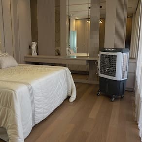 Para um ambiente mais fresco e saudável na sua empresa, seu quarto, sala o ambiente que desejar conte com o climatizador de 80 litros. Ideal para grandes áreas que precisam de climatização, esse climatizador umidifica o ar, diminui a temperatura do ambiente e auxilia na proteção contra mofos e bactérias. Maior potêcia de mercado 250 Wats com uma vazão de 6.000m3/h, anticorrosivo e 95% mais economico que ar condicionado. Fabricado no Brasil.