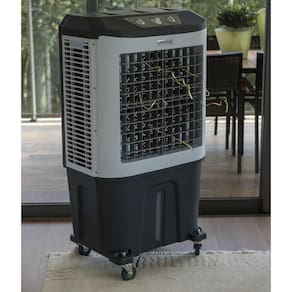 Informações adicionais: Potência elétrica (W) 250 w Frequência (Hz) 60 Hz Vazão (m³/h) 6.000 m³/h Ruido (dB) 42 dB Modo funcionamento Frio (sistema evaporativo) Capacidade de água no Reservatório (L) 80 L Estrutura / Material Plástico PP Escala de velocidades 3 (mínima_media _máxima) Modo acionamento Botão Controle remoto Não Bomba de água Sim Direcionador de ar vertical Sim, automático Direcionador de ar horizontal Sim, manual Abastecimento de água Sim, automático e manual Indicador de nível de água no reservatório Sim Rodízios / Portátil Sim Puxadores Sim