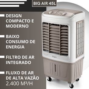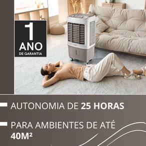 Atributos e benefícios: - Alta Vazão de Ar (2.400 m³/h): Ideal para ambientes amplos, proporcionando excelente circulação de ar em espaços de até 40m². - Eficiência Energética e Autonomia (25 horas): Possui grande autonomia, funcionando até 25 horas com uma única carga de água, proporcionando conforto por longos períodos sem necessidade de reposição constante. - Reservatório de 45 Litros: Capacidade ampla, minimizando a necessidade de reabastecimento frequente. - Umidificação e Resfriamento do Ar: Proporciona um ambiente mais fresco e saudável, sem a necessidade de manter portas ou janelas fechadas, garantindo a renovação do ar no ambiente. - Filtros de Nylon de Alta Qualidade: A filtragem eficiente ajuda a manter o ar limpo e saudável, melhorando a qualidade do ambiente. - Sistema de Desligamento Automático: Maior comodidade e segurança, desligando automaticamente após o período desejado, garantindo economia de energia. - Frascos de Gel Refrigerante Inclusos: Melhora o desempenho de resfriamento, ajudando a intensificar a sensação térmica de frescor. - Swing Automático e Manual (Horizontal e Vertical): Flexibilidade total para direcionar o fluxo de ar conforme sua necessidade. - Três Níveis de Intensidade da Névoa: Ajuste a intensidade do ar resfriado de acordo com sua preferência, garantindo maior controle e conforto. - Rodas Deslizantes com Trava: Facilita o transporte e manutenção do climatizador, com a segurança de travar as rodas para estabilidade durante o uso. - Puxador para Facilidade de Transporte: Permite movimentação rápida e fácil do climatizador entre os ambientes. - Certificação INMETRO e Garantia de 1 Ano: Produto com selo de qualidade e segurança, garantindo durabilidade e desempenho confiável. - Ideal para Ambientes Amplos: Com alta vazão e grande alcance, proporciona ventilação e conforto térmico em ambientes maiores, como salas de estar, escritórios e até áreas externas cobertas.