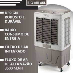 Especificações técnicas: - Reservatório de água: 65 litros - Potência: 182W - Autonomia: 30 horas - 3 níveis de ventilação - Compartimento para Gelo - Design compacto e moderno - 4 Rodas deslizantes com trava - Timer até 2 horas - Compartimento para Gelo: Sim - Painel Eletrônico: Não - Indicação de Nível: Sim - Air Swing: Sim - Vazão de Ar: 3500 m3/h