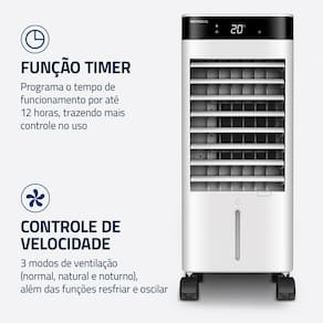 Com design funcional na cor branca, o climatizador é fácil de transportar e se adapta perfeitamente a diferentes ambientes, como quartos, salas e escritórios. Seu funcionamento em 127V / 60Hz garante desempenho eficiente para o uso diário.