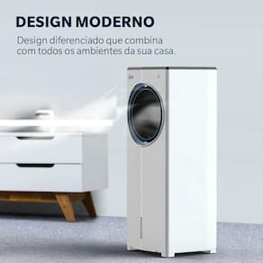 Compacto e Funcional: Com rodinhas para fácil locomoção e tamanho compacto, pode ser utilizado em qualquer espaço. O reservatório superior de 5,3 litros facilita o reabastecimento.