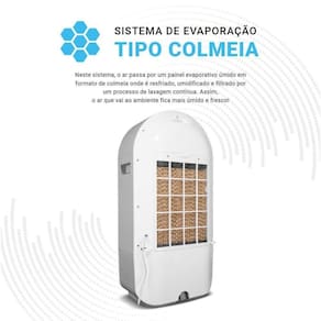 São 3 velocidades de ventilação para ajustar o nível ideal de climatização conforme a necessidade, além do filtro colmeia que retém poeira e partículas, melhorando a dispersão da água e deixando o ambiente mais limpo e agradável. O controle remoto incluso permite acionar e configurar o climatizador à distância com praticidade.