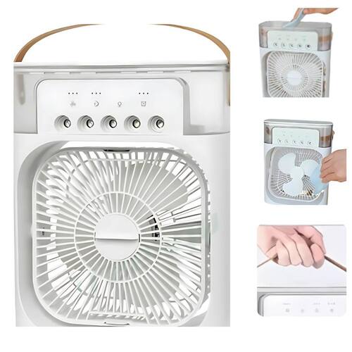 Climatizador de ar portátil premium para resfriamento instantâneo Descrição do anúncio: O climatizador é a solução perfeita para proporcionar um ambiente mais fresco e agradável. Com três opções de vaporização e iluminação decorativa led, ele é ideal para quartos, escritórios e salas.