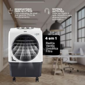 4 em 1: Ventila, Umidifica, Filtra e Resfria o ar do ambiente.