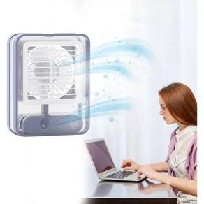 Climatizador e mini ar condicionado portátil ventilador ar frio 3 em 1 Com um design moderno e compacto, o Mini Ventilador Portátil é perfeito para quem está em movimento, além de ser muito silencioso. Ideal para uma noite de sono repousante ou de trabalho ou estudo ininterrupto. Melhor ainda, seu ventilador silencioso não será uma distração, garantindo que você permaneça focado, tranquilo e produtivo. Carregamento USB, e com três níveis de velocidade, este ventilador ajuda a resfriar, umidificar e purificar para obter ar fresco e limpo a qualquer hora, em qualquer lugar. Recomenda-se o uso de água gelada ou cubos de gelo para um melhor efeito de resfriamento. O ventilador possui uma seleção livre de direção do vento. O ângulo pode ser ajustado livremente para atender a diferentes posições e aproveitar a brisa. Além de conter uma luz interna, de uso opcional, que deixa o ambiente muito agradável.