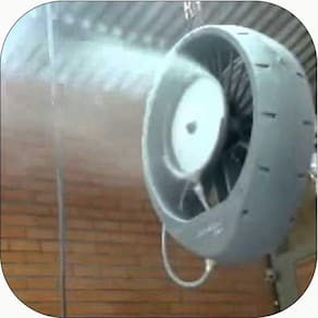 Como Funciona:Uma Pequena Quantidade De Água É Evaporada é Lançada Através Do Processo De Centrifugação Em Disco. O Vapor Frio Expelido é micro fino evaporando rapidamente, extraindo o Calor Do Ar e Diminuindo A Temperatura Em Até 10c, Dependendo Das Condições do Ambiente.