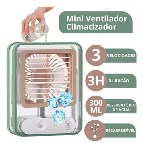 Mini Ventilador Umidificador De Ar Para Noites Agradáveis O Mini Ventilador Umidificador de Ar é o aparelho perfeito para tornar suas noites mais agradáveis. Com sua tecnologia avançada, ele é capaz de resfriar e umidificar o ambiente, proporcionando uma sensação de frescor em qualquer lugar. Seu design extremamente compacto e leve o torna fácil de transportar e ideal para usar em diversos ambientes, como quarto, sala, escritório, entre outros. Este mini climatizador conta com um sistema de resfriamento econômico, perfeito para quem sofre com alergias e doenças respiratórias, pois evita o ressecamento do ar. Além disso, ele é recarregável e possui uma bateria embutida de 3.7v, que pode ser Utilizado por um longo tempo depois de totalmente carregada. Com uma corrente de entrada de 0,5-1A e potência de saída de 4,5w, o Mini Ventilador Umidificador de Ar possui três velocidades de ventilação, garantindo um ajuste personalizado de acordo com a sua preferência. Basta pressionar o touch para ligar o umidificador e desfrutar de um ambiente mais fresco e agradável. As dimensões do aparelho são 17,7x13,7x5,5cm, tornando-o compacto e fácil de utilizar em qualquer lugar. Além disso, ele acompanha um cabo de carregamento e um manual de instruções, para facilitar o seu uso. Invista no Mini Ventilador Umidificador de Ar e tenha noites mais agradáveis e refrescantes. Não perca tempo e adquira já o seu Mini Ventilador Umidificador de Ar para desfrutar de noites agradáveis e frescas. Marca: Não Informado