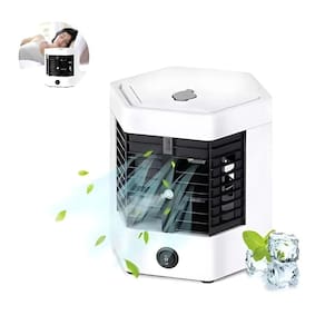 Climatizador Que Usa Água E Gelo: Tecnologia A Seu Favor Fique fresco e confortável. Perfeito para todas as estações do ano, pois funciona como ar-condicionado, purificador e umidificador de ar Você pode deixar em qualquer ambiente da casa, em escritórios, estabelecimentos, e onde você quiser Você pode fazer seus afazeres domésticos, deixar na mesa de estudos ou trabalho e se refrescar durante o verão. Possui botão para ligar ou desligar a luz de led que indica as velocidades. Para deixar o ambiente mais frio, molhe o filtro e coloque no congelador antes de usar A água do reservatório dura de 8 a 10 horas, dependendo da velocidade utilizada. Pode utilizar gelo também no reservatório.