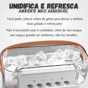 Com o Ventilador Portátil Refrigerador De Ar Com Reservatório, você pode personalizar sua experiência escolhendo entre 7 cores vibrantes. Adicione cubos de gelo para uma névoa refrescante e crie um ambiente ainda mais agradável. Além disso, ele possui um compartimento para essências, aromas e repelentes, permitindo que você crie um ambiente perfumado e agradável.