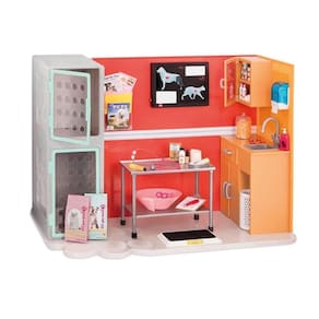 Com a Clínica Veterinária Healthy Paws, suas bonecas podem fazer check-ups, radiografias e até mesmo proporcionar uma estadia confortável em canis aconchegantes. Os acessórios incluem uma caixa de luz, radiografias de animais de estimação, mesa de exame, balança, seringa, termômetro, estetoscópio e muitos outros itens essenciais para cuidar dos animais.