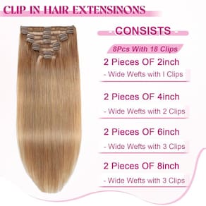 Apresentamos as extensões de cabelo POGINJA Clip in Hair - a solução perfeita para aqueles que buscam extensões de cabelo humano de qualidade premium que sejam fáceis de manter e pentear. Nossas extensões de encaixe são feitas de cabelo humano real de alta qualidade, sem emaranhamento e sem queda, proporcionando uma sensação suave e macia. O design de trama dupla de nossas extensões evita quedas, enquanto os clipes macios cobertos de borracha garantem conforto e protegem o couro cabeludo durante o uso. Fácil de enrolar e misturar perfeitamente com cabelo natural, estes clipes são recomendados para 3-4 meses de uso com cuidados adequados. Escolha entre uma variedade de pacotes para alcançar o volume desejado, disponível em comprimentos que variam de 35 a 61 cm e pesos entre 80 a 120 g, com 8 peças incluídas em cada conjunto. Nossas extensões de cabelo com clipe vêm com uma política de devolução de 30 dias para garantir a satisfação do cliente. Se você estiver procurando extensões de cabelo presas para uso diário ou ocasiões especiais, as extensões de cabelo POGINJA Clip in Hair são a escolha ideal. Sem queda ou emaranhamento, fácil aplicação e remoção e dicas de cuidados fornecidas para longevidade, essas extensões são projetadas para atender às suas necessidades de estilo. Invista em extensões de cabelo humano reais da POGINJA e aproveite os benefícios de um cabelo de alta qualidade que parece e parece natural. A satisfação do cliente é nossa prioridade, e nosso serviço pós-venda está disponível para resolver quaisquer problemas que possam surgir. Melhore sua beleza natural com as extensões de cabelo POGINJA Clip in - a mistura perfeita de estilo, qualidade e conveniência para mulheres que buscam o melhor em extensões de cabelo. Experimente agora e experimente você mesmo a diferença! - ?Material de extensões de cabelo com clipe?: Extensões de cabelo de qualidade de salão, clipe 100% remy premium em cabelo humano, sem emaranhamento, sem queda. O cabelo é macio e macio. Nossas extensões de cabelo podem ser enroladas como você quiser. Pode durar de 3 a 4 meses com bom cuidado. Escolhemos cabelos de alta qualidade, tão bons quanto o seu próprio cabelo. - ?Transformação rápida e fácil?: Transforme seu visual em minutos com extensões de encaixe. Estas extensões são projetadas para facilitar o uso, permitindo que você adicione volume ou comprimento instantaneamente. Perfeito para ocasiões especiais ou uma simples mudança de estilo, estas extensões são o seu segredo para o cabelo de qualidade de salão em casa. - ?Antiqueda, invisível e seguro?: Nossas extensões de cabelo com clipe são usadas de trama dupla, que é mais durável e não cai. Os clipes são cobertos com uma camada de borracha macia para proteger cuidadosamente seu couro cabeludo e cabelo. Oferece um ajuste seguro sem a necessidade de cola ou fita. As extensões são leves e confortáveis, garantindo uma aparência natural que mantém você confiante durante todo o dia. - ?Grampo de cabelo humano em detalhes de extensões?: 100% clipe Remy premium em cabelo humano, 8 peças 80-120 g com 18 clipes por conjunto. O comprimento para extensões de cabelo humano com clipes retos: 35,56-61 cm. De acordo com o volume do seu cabelo, geralmente 1-2 pacotes podem preencher toda a sua cabeça, aumentando o comprimento e o volume. Se você precisa de cabelo grosso, recomendamos comprar mais de 2 pacotes para alcançar um resultado perfeito. - ?Serviço excepcional e satisfação?: 30 dias sem motivo para devolução, se o produto não satisfizer você sobre extensões de cabelo com clipe, por e-mail, faremos o nosso melhor para ajudá-lo a resolver o problema do produto rapidamente! Captura de luz, função da câmera, monitores diferentes e outros fatores afetam, a cor que aparece na sua tela pode ser diferente. Se você não tiver certeza se a cor combina com você, antes de comprar.